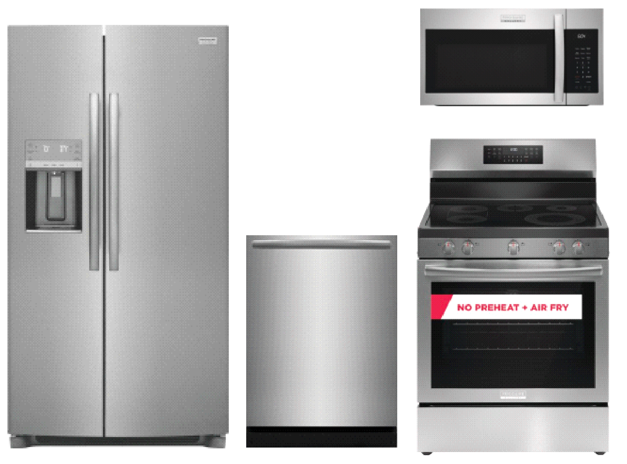 Frigidaire Gallery 24" Dishwasher WITH Frigidaire Gallery 22.3 Cu. Ft. 36" Counter Depth Side by Side Refrigerator WITH Frigidaire Gallery 30" Rear Control Electric Range with Total Convection AND Frigidaire Gallery 1.9 Cu. Ft. Over-The-Range Microwave