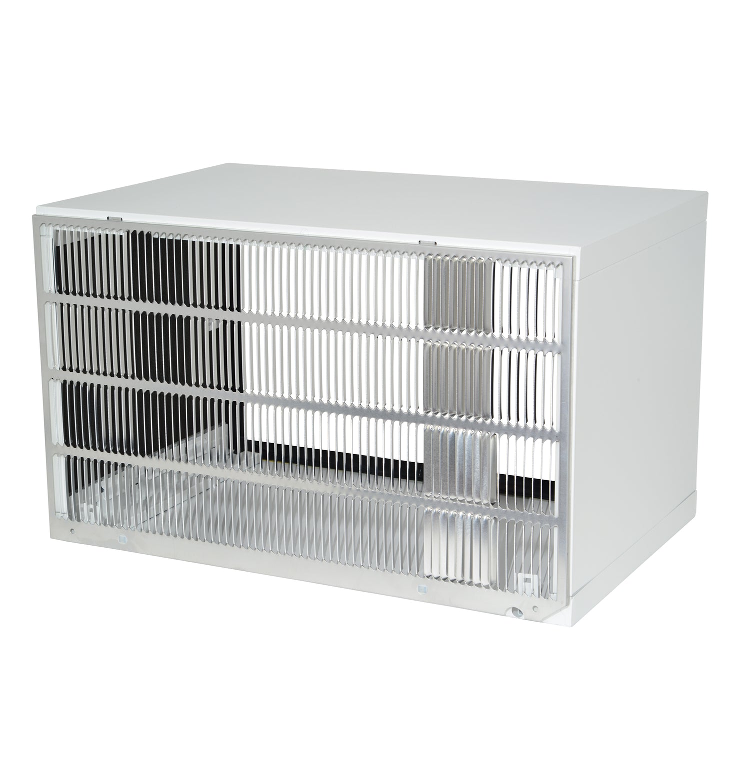 - Solid-sided wall case fabricated of galvanized steel with baked enamel (white) finish