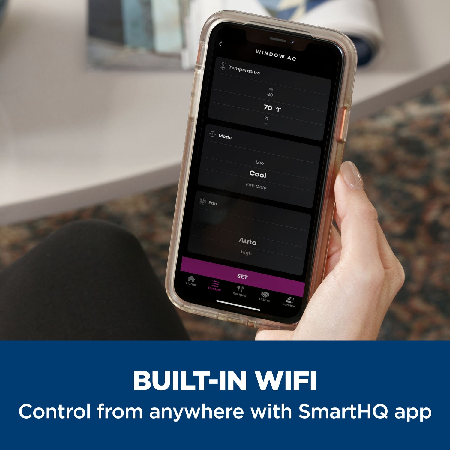 (BR)(B)Cools Extra-Large Rooms(/B)(P)18,600 BTU cooling capacity offers maximum comfort in rooms up to 1,000 square feet(/P)(BR)(B)Built-in WiFi(/B)(P)Use the SmartHQ app to control and monitor this WiFi enabled smart air conditioner from anywhere, giving you connected peace of mind(/P)(BR)(B)Maximum Comfort Cool(/B)(P)Three cooling settings and fan speeds provide total flexibility with optimal home comfort and air conditioner efficiency(/P)(BR)(B)Voice Control(/B)(P)Use voice commands to control the unit after connecting it to a smart speaker like Amazon Alexa or Google Assistant(/P)(BR)(B)Energy Reporting(/B)(P)Monitor air conditioner energy consumption with reports that show how much you've used, so you can maximize savings and enjoy a truly connected performance(/P)(BR)(B)Geolocation(/B)(P)Geofence technology pinpoints your smartphone location then automatically adjusts the smart air conditioner settings for when you're home(/P)(BR)(B)Eco Mode(/B)(P)The air conditioner Eco Mode aut