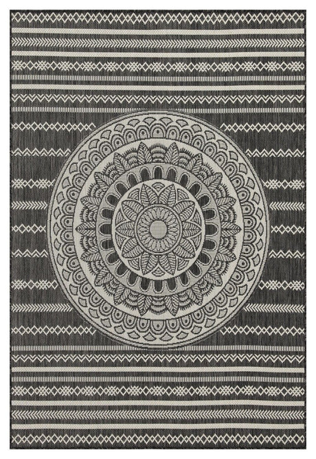 Guros - 6' X 9' Medallion Indoor / Outdoor Area Rug - Gray / White