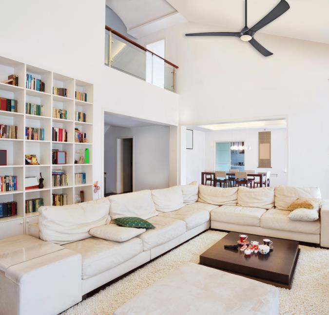 - Contemporary style 72-inch indoor ceiling fan in black finish with coordinating blades