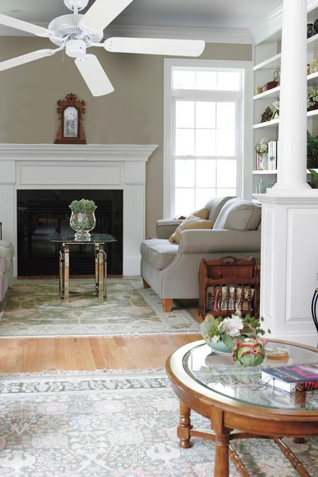 This ceiling fan relies on a silicon steel motor with triple capacitor to provide powerful, quiet circulation. It also features three fan speeds and a reversible switch for customized comfort. In warm weather, you can run the fan counterclockwise to stay cool. In cold weather, you can run it clockwise to recirculate warm air from the ceiling, eliminating cold spots and drafts.