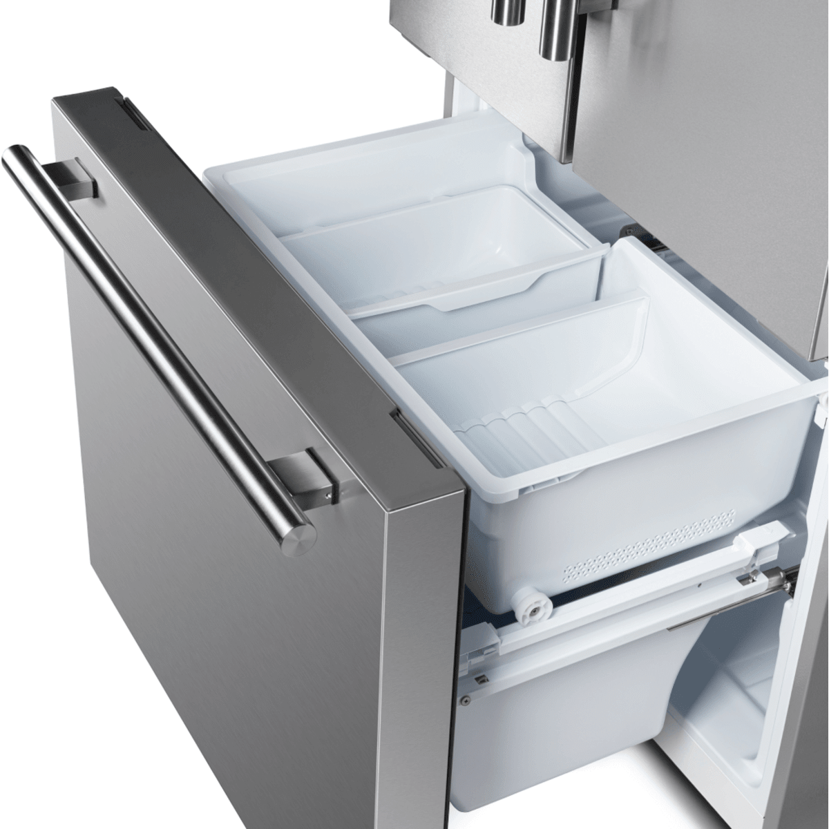 Forno Espresso Gallipoli FFFFD197431SB 30 Inch Freestanding Counter-Depth French Door Refrigerator with 17.48 cu. ft. Total Capacity, Ice Maker, Total Frost-Free Design, and ENERGY STAR® Certified: Stainless Steel is backordered and will ship as soon as it is back in stock.