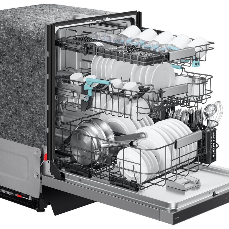 Samsung DW90F89T0USR Bespoke 24 in. Top Control Smart Dishwasher with 38 dBA Sound Level, 3rd-Rack, Smart Dry with AutoRelease Door & Pocket Handle - Fingerprint Resistant Stainless Steel