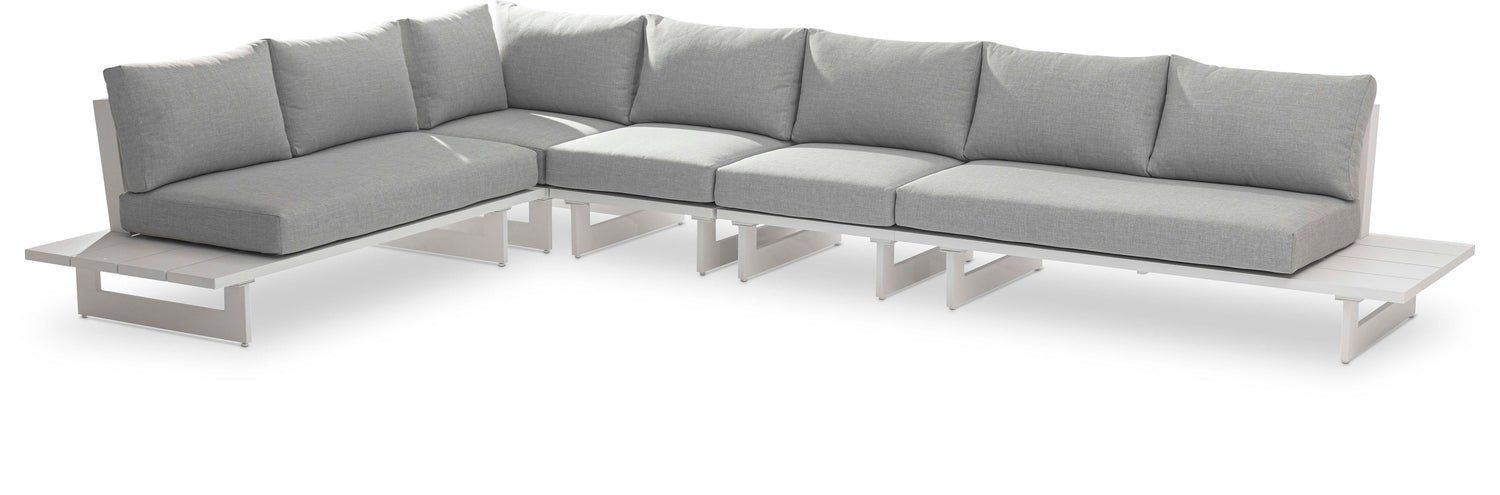 Maldives - 5 Piece Water Resistant Outdoor Patio Modular Left Arm Facing Sectional With White Base - Gray