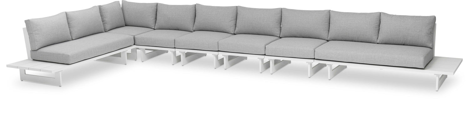 Maldives - 7 Piece Water Resistant Outdoor Patio Modular Left Arm Facing Sectional With White Base - Gray