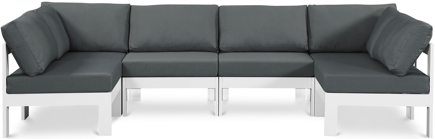Nizuc - Outdoor Patio 6 Piece Modular U-Shaped Sectional With White Frame - Gray