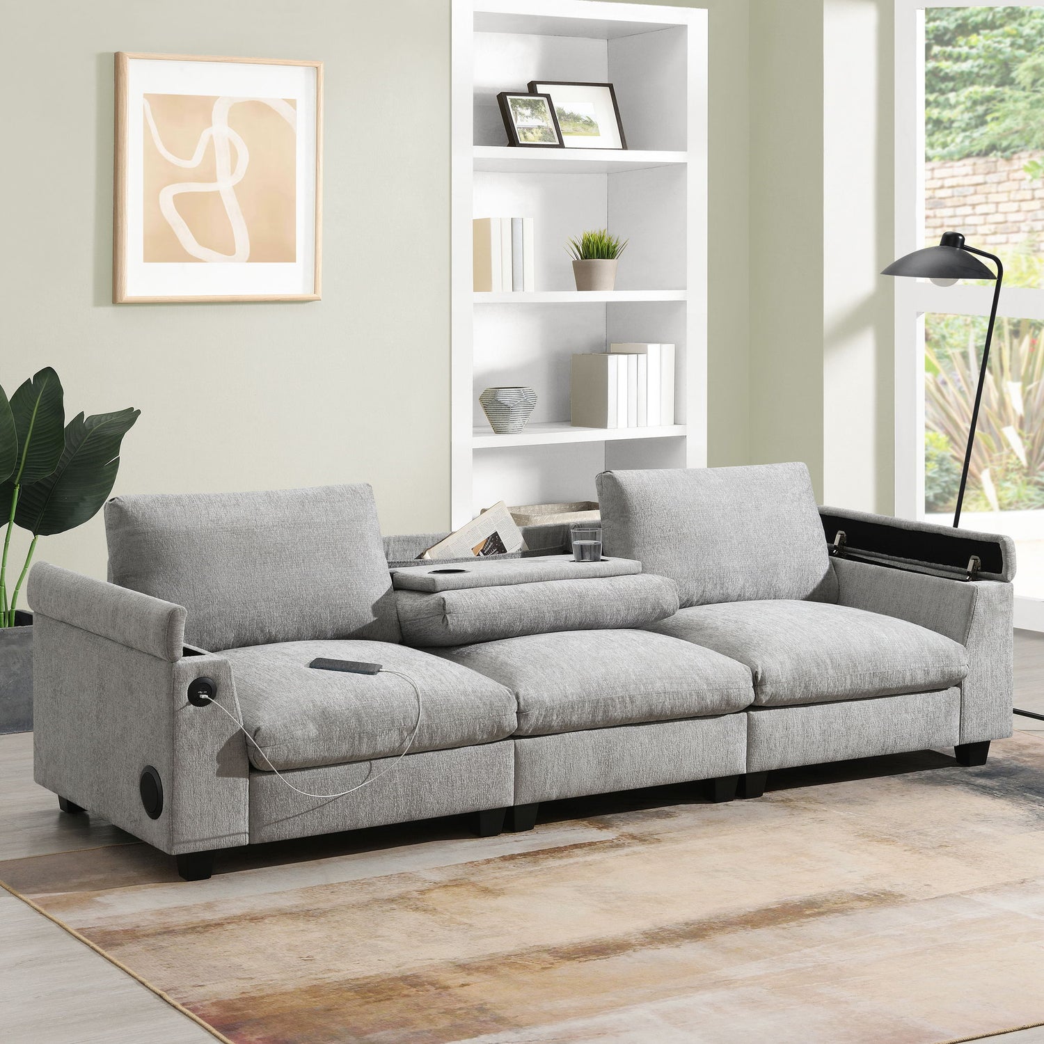 - USB Charging: Featuring USB ports, the sofa offers convenient device charging, allowing you to power your phone, tablet, or e-reader without leaving your seat. This feature caters to tech-savvy users, providing easy access to power without additional cables.