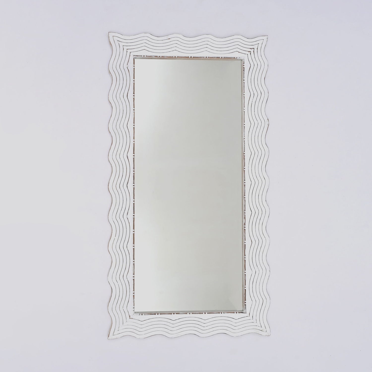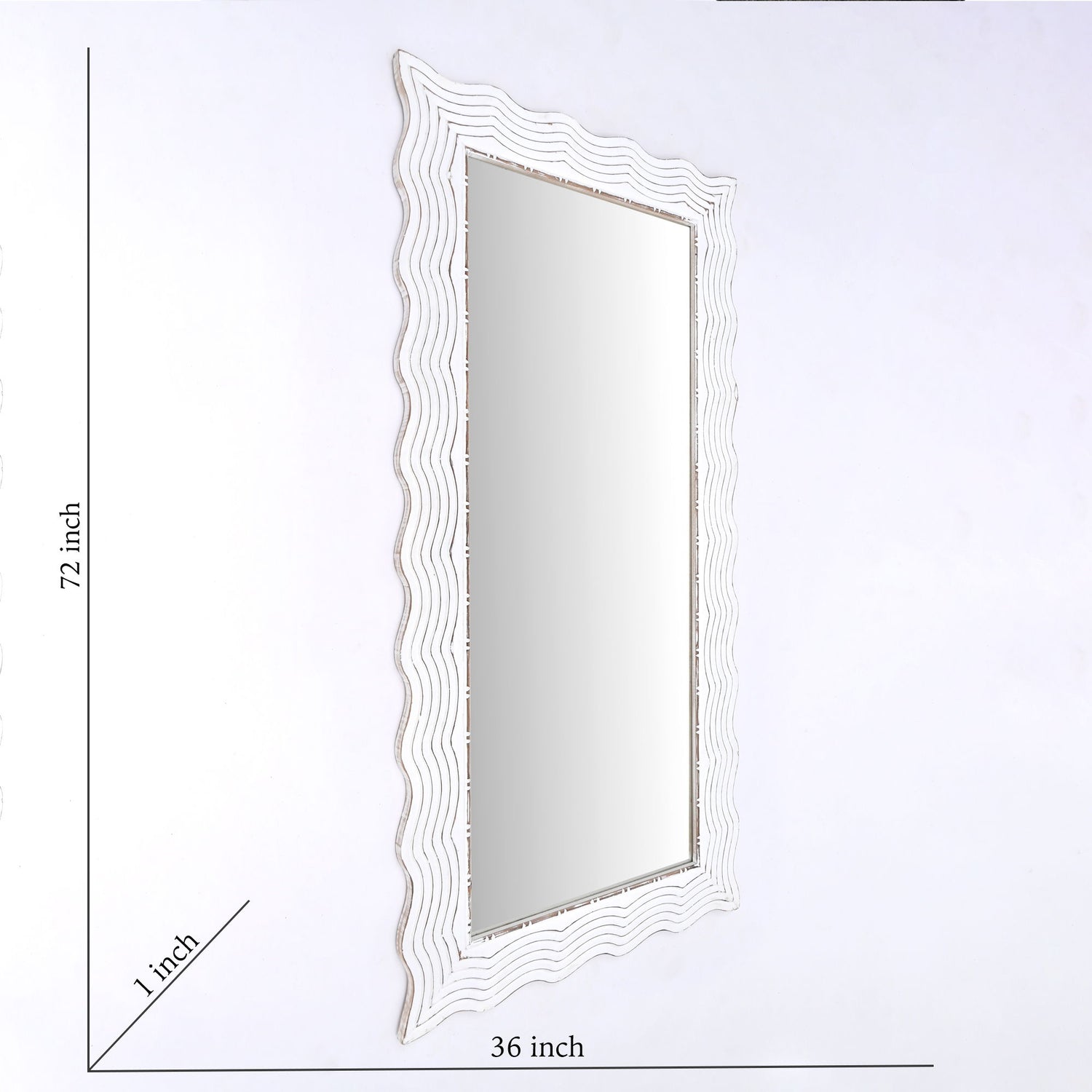 Handcarved Wave Design Rectangle Mirror Accent Enhancing Space - Antique White