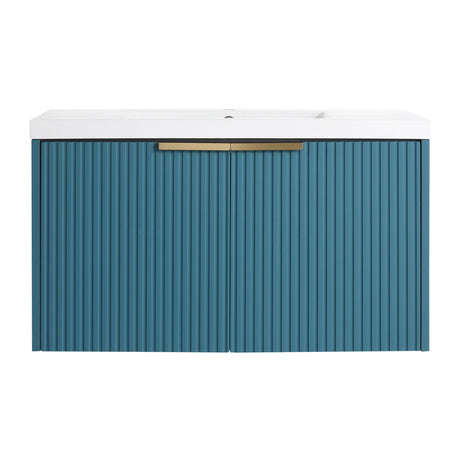 Modern Floating Bathroom Vanity With Resin Sink, Soft Close Doors