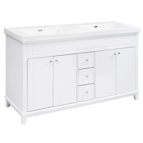 Bathroom Vanity With Double Sinks, 3 Drawers & 4 Doors, Soft Close, All Open Back Design - White