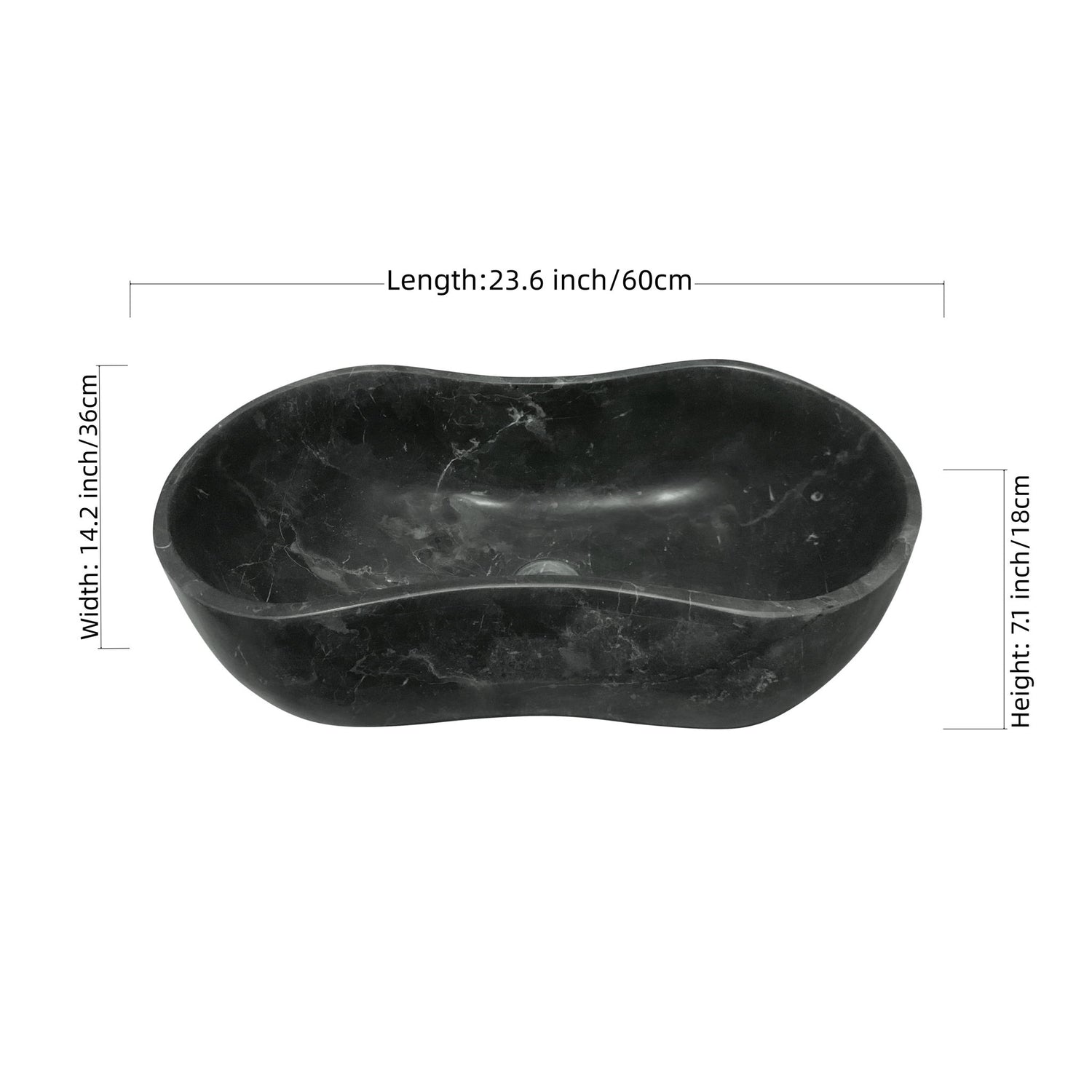 - Dimension: 23.6 x 14.2 x h7.1 inches / 600 x 360 x h180 mm. One piece per box. Made from a single solid block of natural marble for lasting strength.