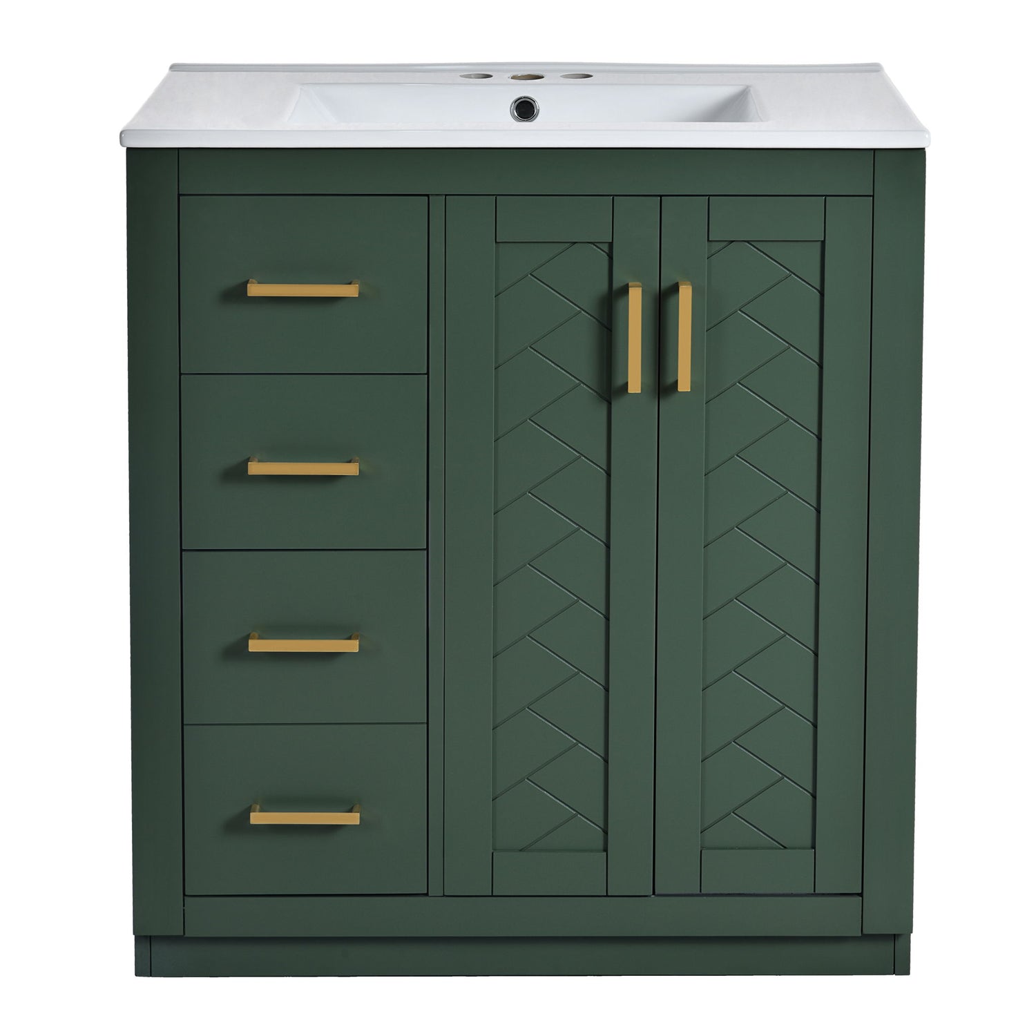 Bathroom Vanity With Ceramic Sink Combo, Frame Bathroom Storage Cabinet, Freestanding Vanity Set With 3 Drawers & Soft Closing Doors - Green