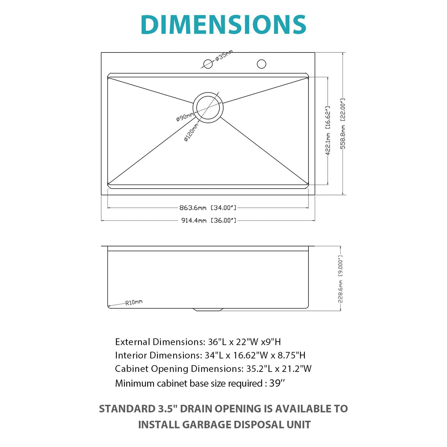 - T304 Stainless Steel 16G Construction: Built with thick 16 gauge T-304 grade stainless steel for enhanced strength and lasting durability