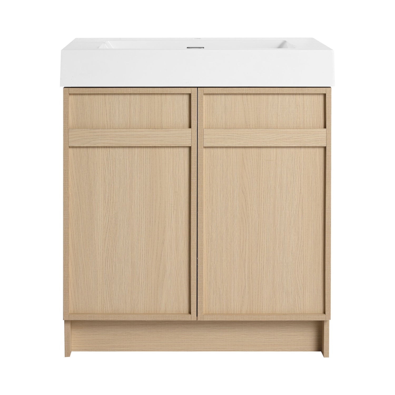 Contemporary 30" Freestanding Bathroom Vanity With White Resin Sink & Soft Close Cabinet Doors - Oak