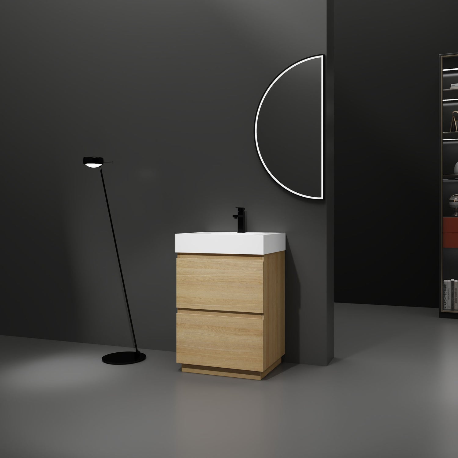Modern Bathroom Vanity With Single Sink And Double Drawer, Freestanding Engineered Wood Cabinet - Oak