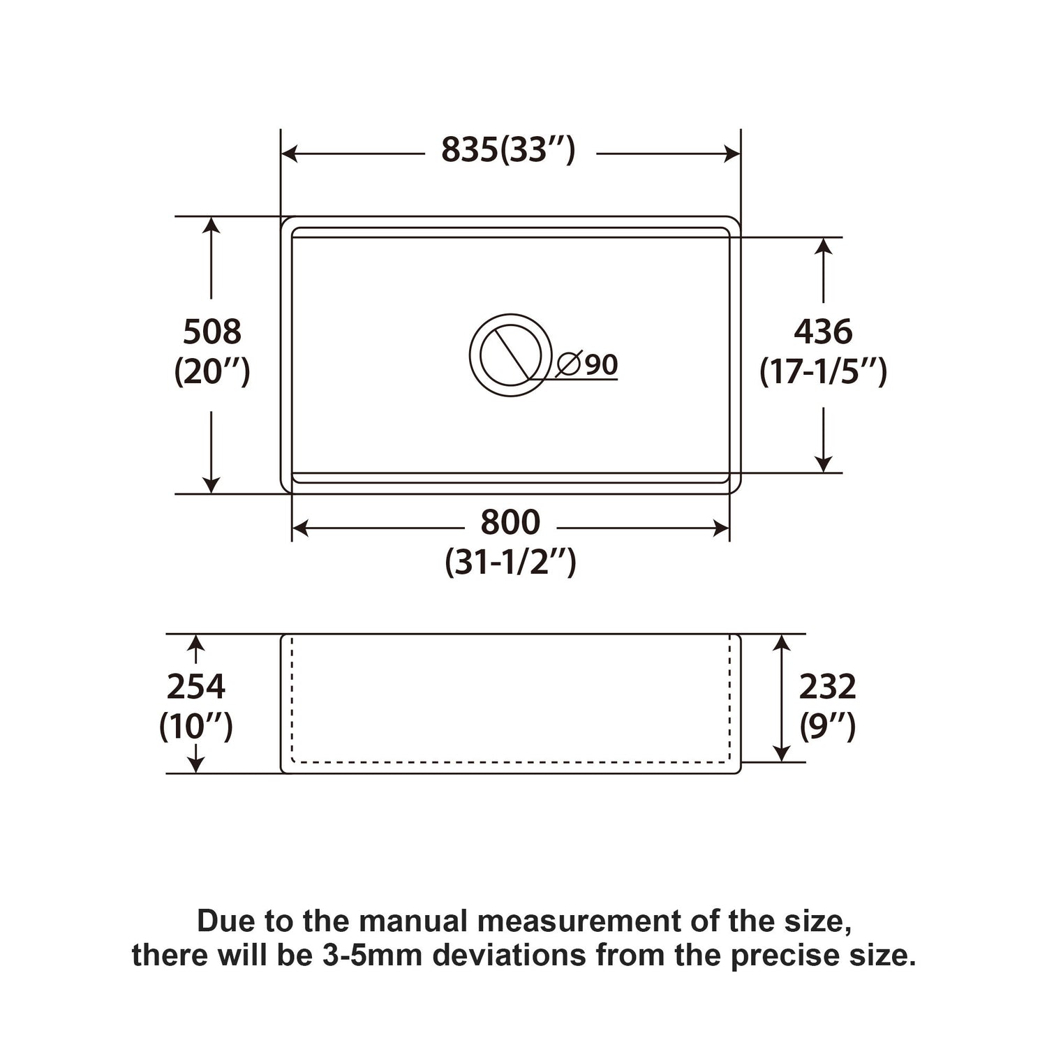 • Stylish Deep White Kitchen Sink Size: Measures 33 x 20 x 10 inches with a standard 3-1/2-inch drain compatible with most garbage disposals.