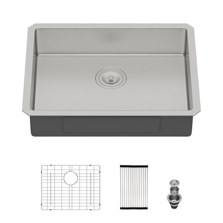Ada-Compliant 27" Undermount Sink, Low Depth Single Bowl - Brushed Nickel