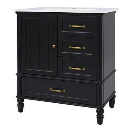 30" Bathroom Vanity With Sink, 3 Drawers, Adjustable Feet