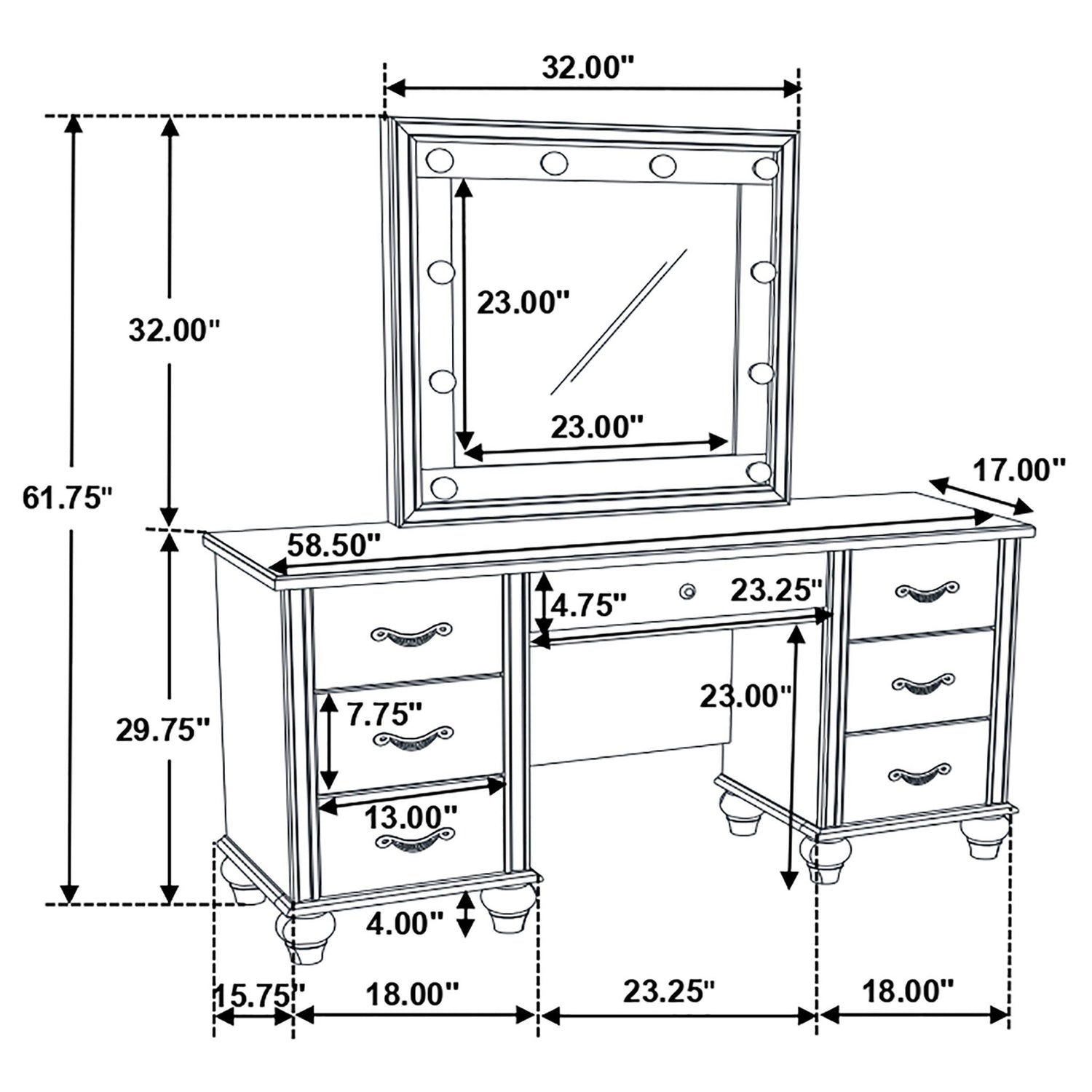 Charlotte - 7 Drawer Vanity Desk With LED Mirror - White