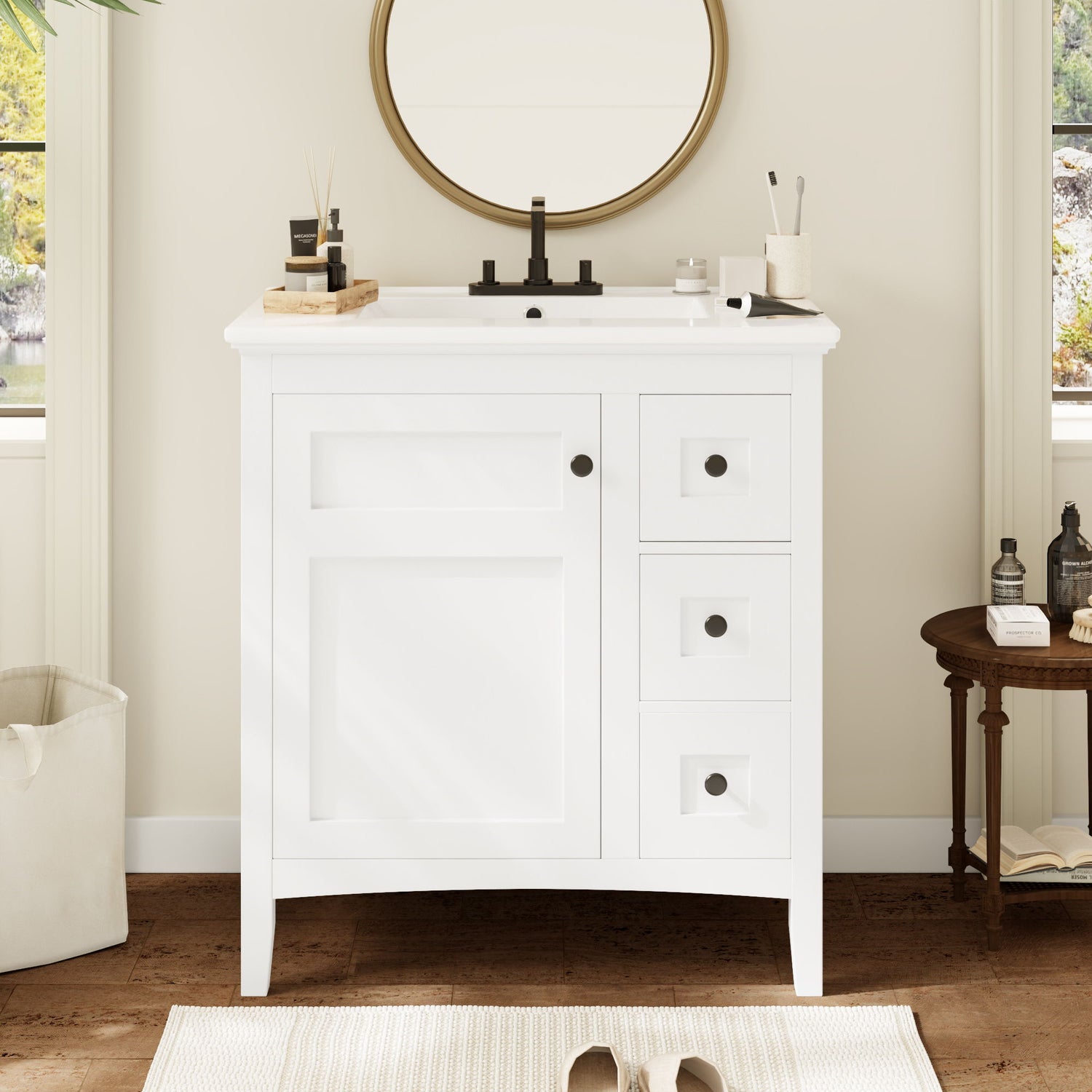 Bathroom Vanity With Sink, Storage Cabinet With 3 Drawers - White