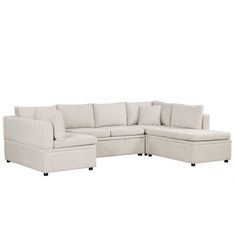 U Shaped Sectional Sofa Bed With Storage Chaise Lounges, USB Ports, And Cup Holders
