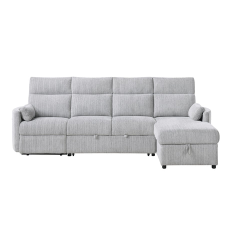 Nyhan - Upholstered Corner Sectional With Pull Out Loveseat And Storaged Chaise - Light Gray