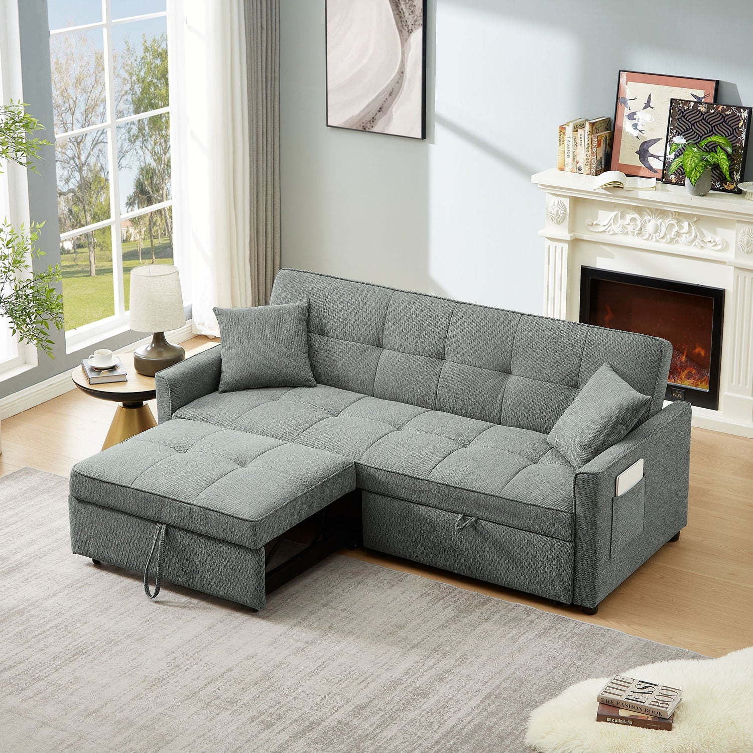 3 In 1 Convertible Sleeper Sofa Bed, Reclining Backrest, Pillows, Pockets