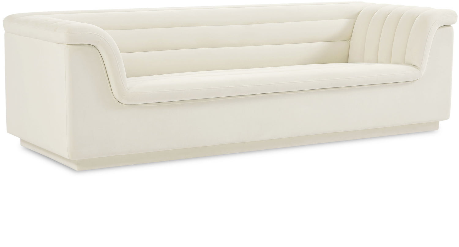 Add instant modern pizzazz to your living room or den with this Cascade velvet fabric sofa. Upholstered from top to bottom in soft velvet upholstery, this chic sofa adds contemporary flair to any space you choose to use it in. Curved arms and a sleek profile make this sofa beautiful to behold while deep channel tufting adds to its long-term durability and adds a textural feel. Thickly padded arms, back and seat make this chair perfect for curling up in while watching TV or reading the latest bestseller.