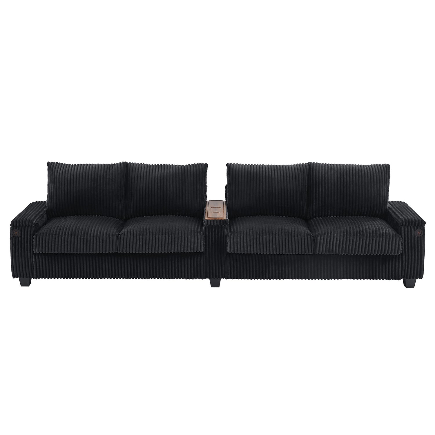 Modern 4 Seater Corduroy Sofa Couch With USB Ports And Hidden Storage - Black