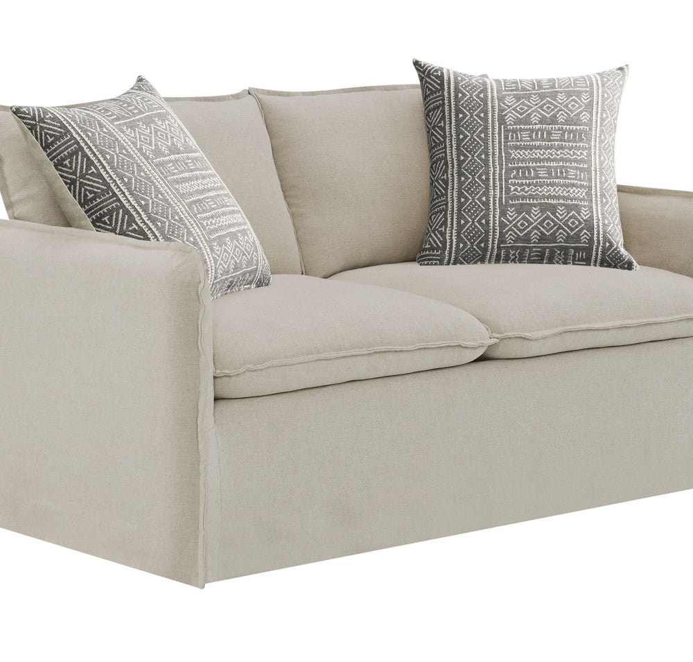 Upendo - Pattern Linen Sofa With 2 Toss Pillows - Beige is backordered and will ship as soon as it is back in stock.