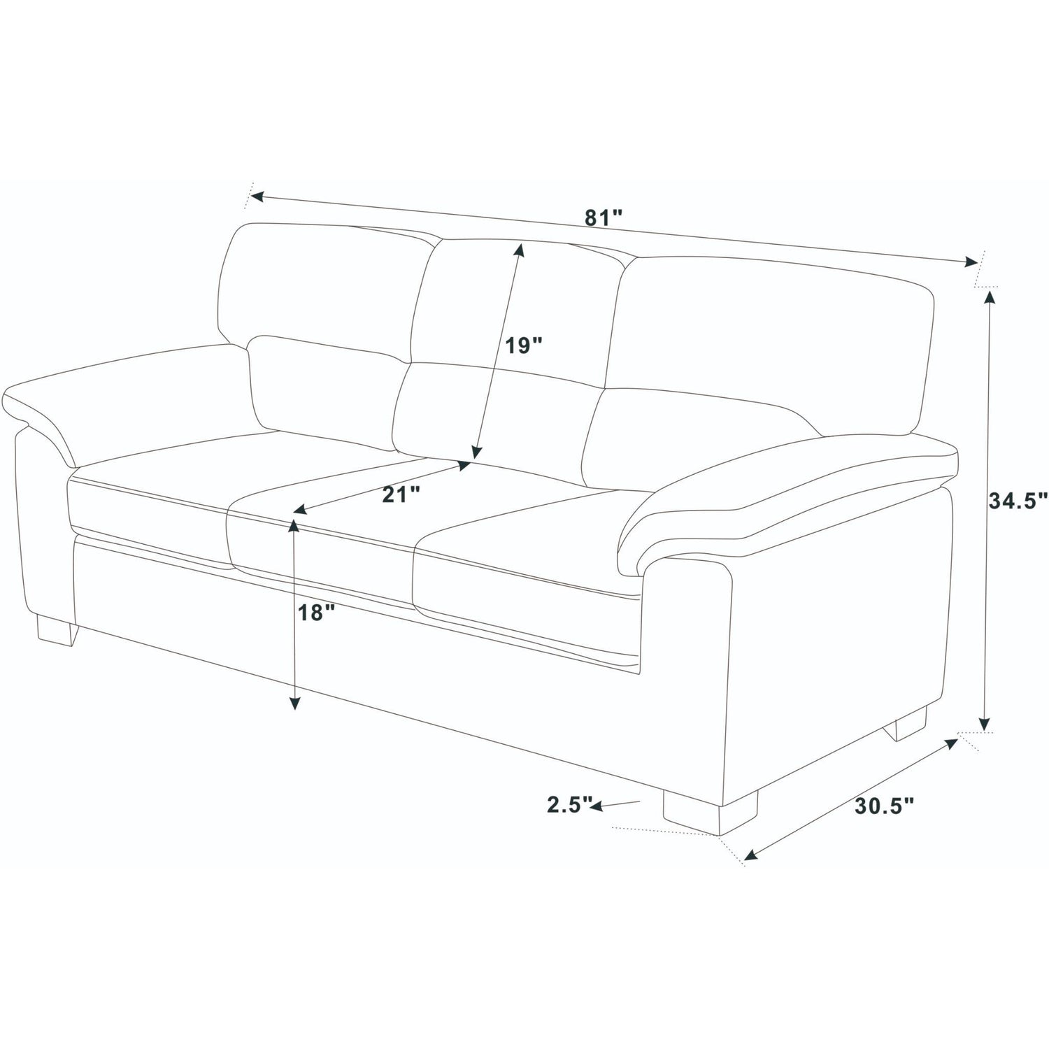 30.5"W x 81.0"D x 34.5"H - 125.0 lb