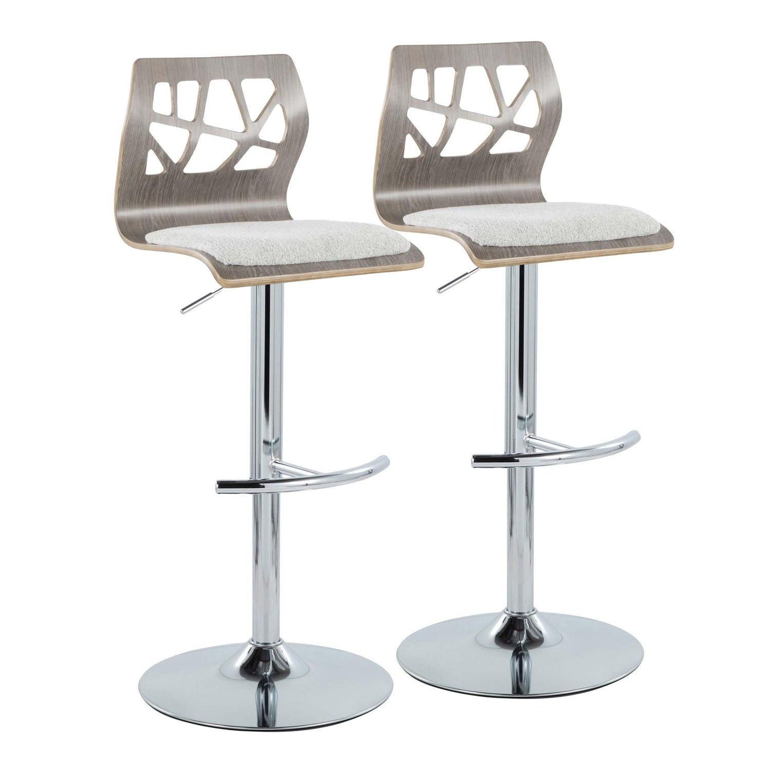 Folia - Contemporary Adjustable Barstool With Swivel With Rounded T Footrest (Set of 2) - Chrome / Light Gray