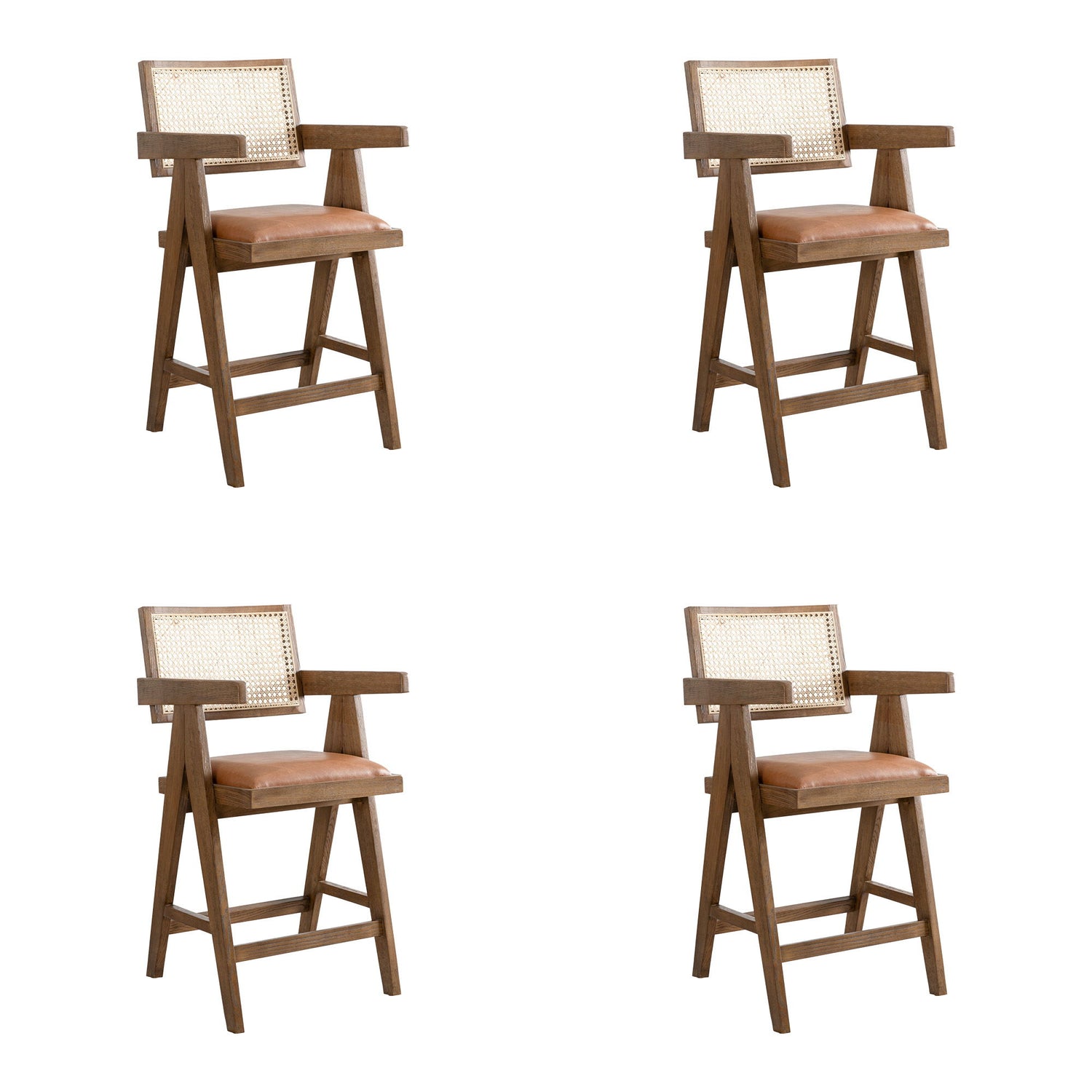 Harley - Nutmeg Brown Solid Wood And Rattan Upholstered 26" Counter Height Barstool (Set of 4) - Red / Brown Faux Leather Seat