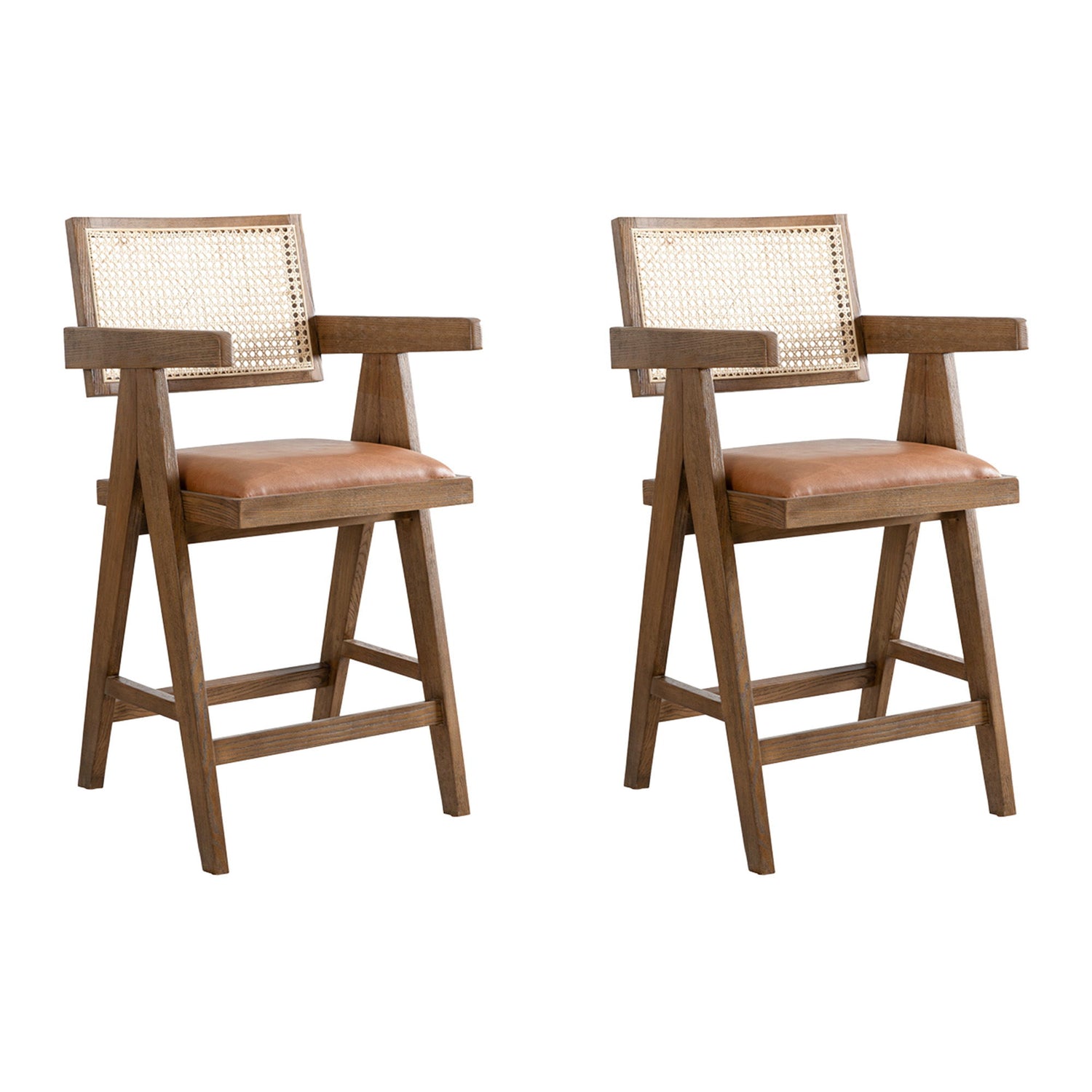 Harley - Nutmeg Brown Solid Wood And Rattan Upholstered 26" Counter Height Barstool