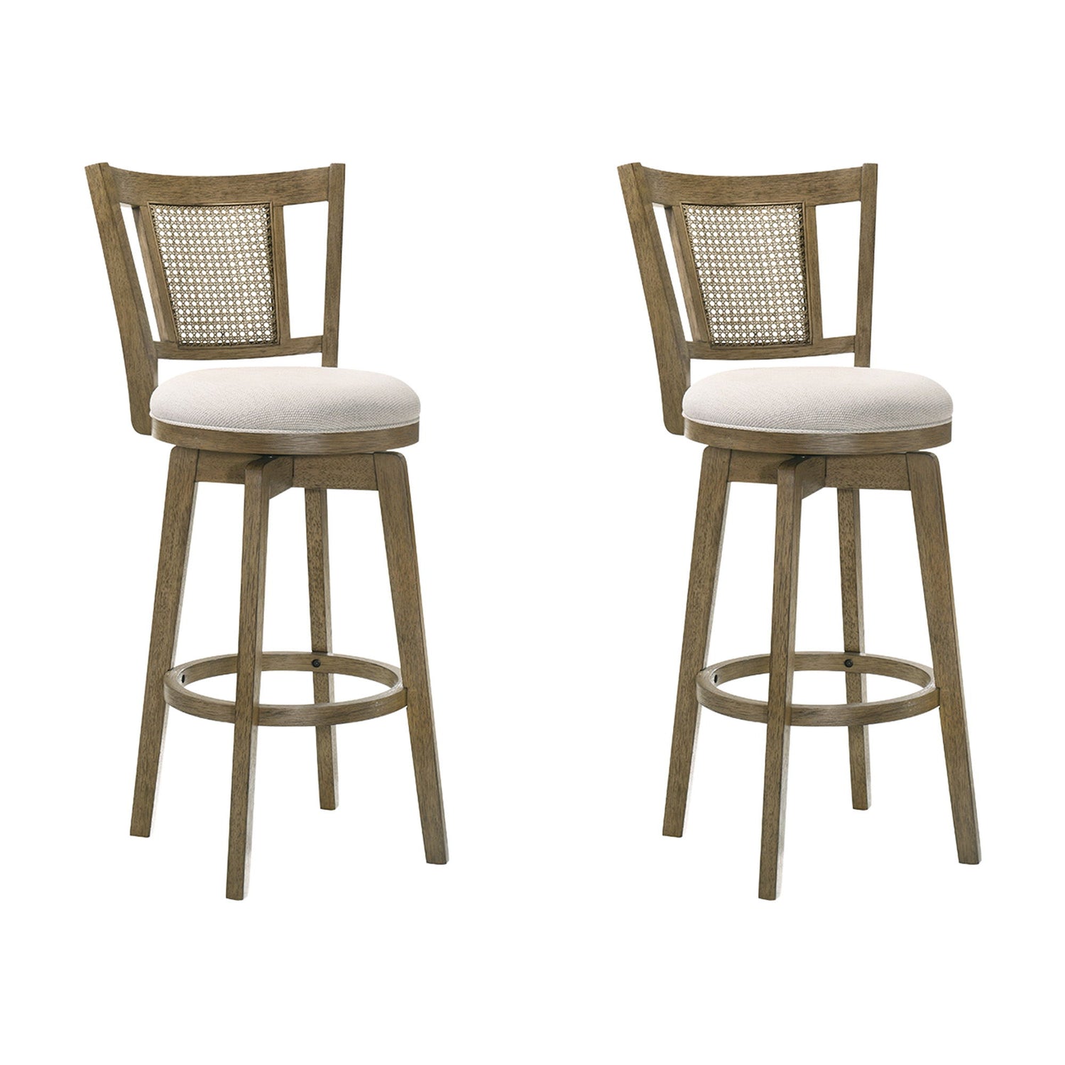 Isla - 30" Putty Brown Bar Height Rubberwood Swivel Barstool (Set of 2) - Cream Fabric Seat