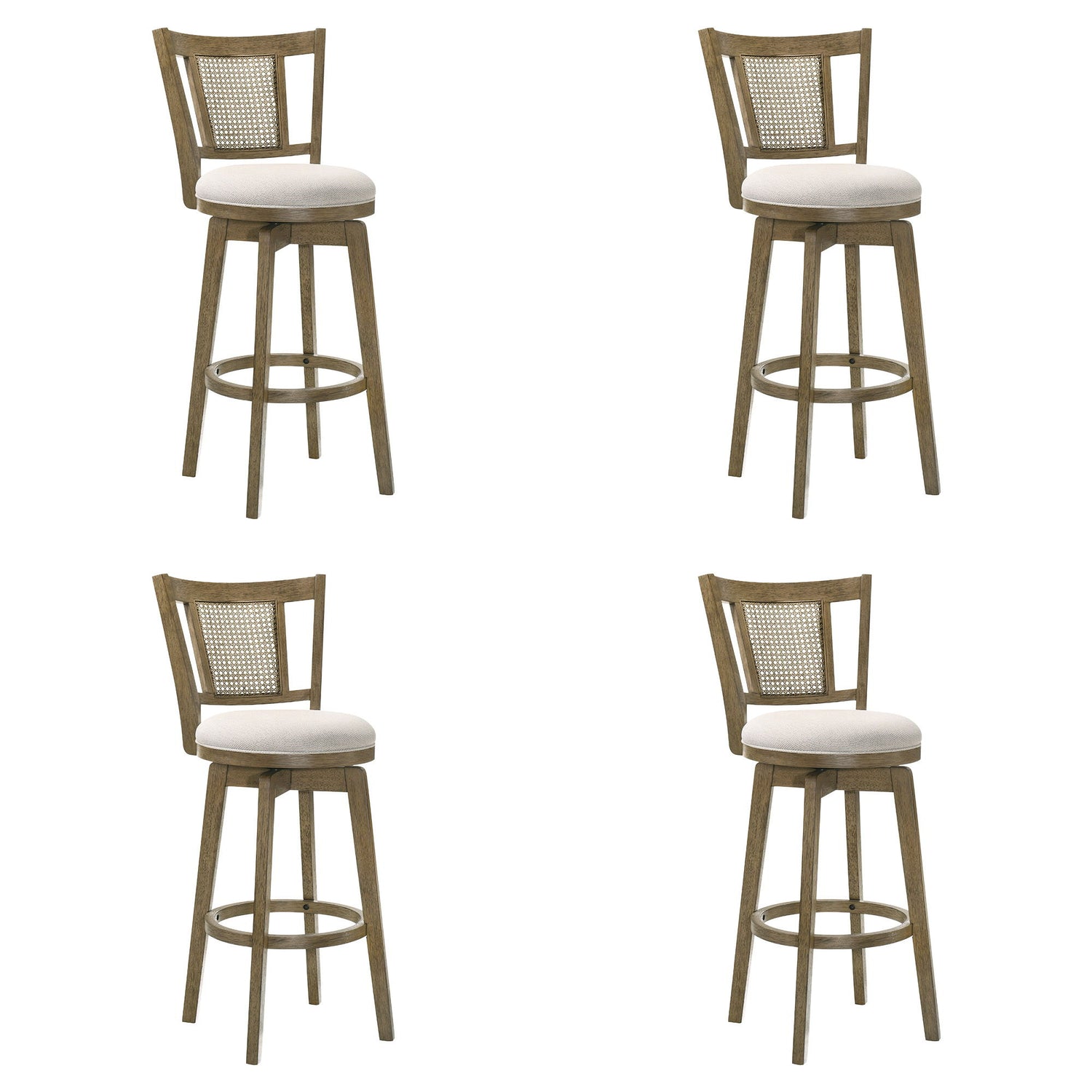 Isla - 30" Putty Brown Bar Height Rubberwood Swivel Barstool (Set of 4) - Cream Fabric Seat