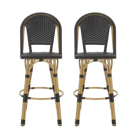 Outdoor Rattan And Aluminum French Barstools (Set of 2)