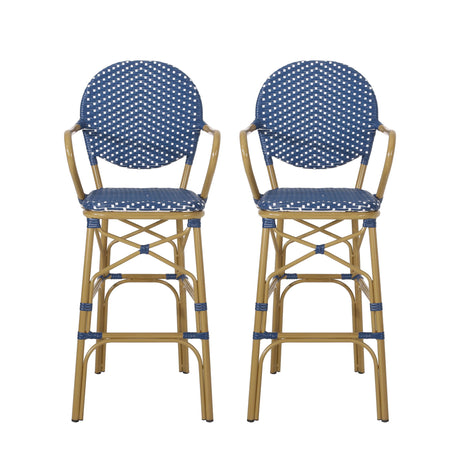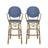 Outdoor Rattan French Barstool Set,, Bamboo, Seat Height - Navy Blue / White