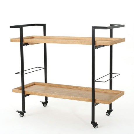 Modern Industrial Bar Cart With Shelving And Casters