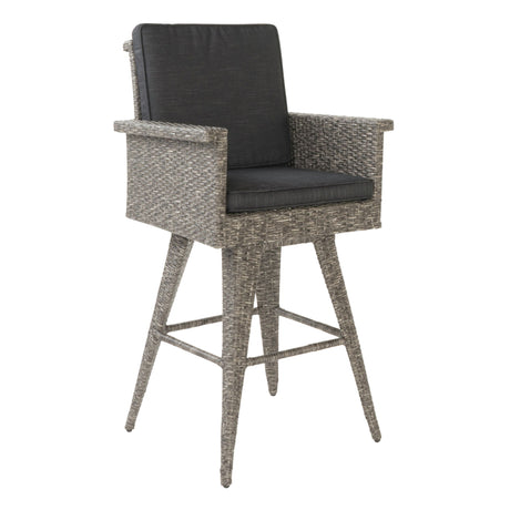 Outdoor Rattan Swivel Barstool With Water Resistant Cushion - Mixed Black / Dark Gray