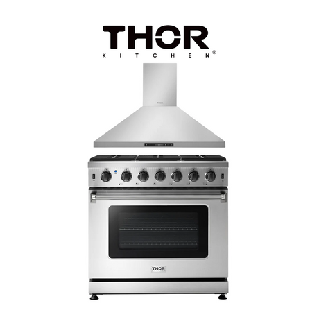 THOR Kitchen Package 36" Gas Range, 36" Range Hood, AP-LRG3601U