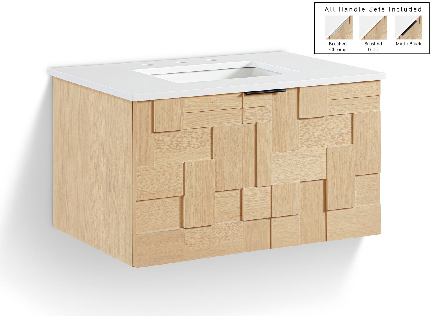 Leonardo - Engineered Stone And Solid Wood 30" Wall Mounted Bathroom Vanity - Natural