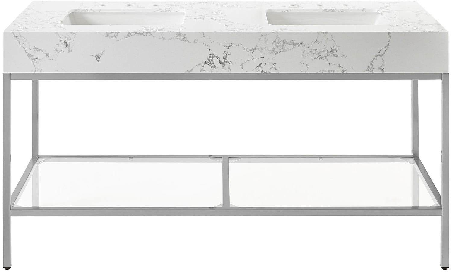 Marmo - 60" Engineered Marble Bathroom Vanity With Chrome Base - White