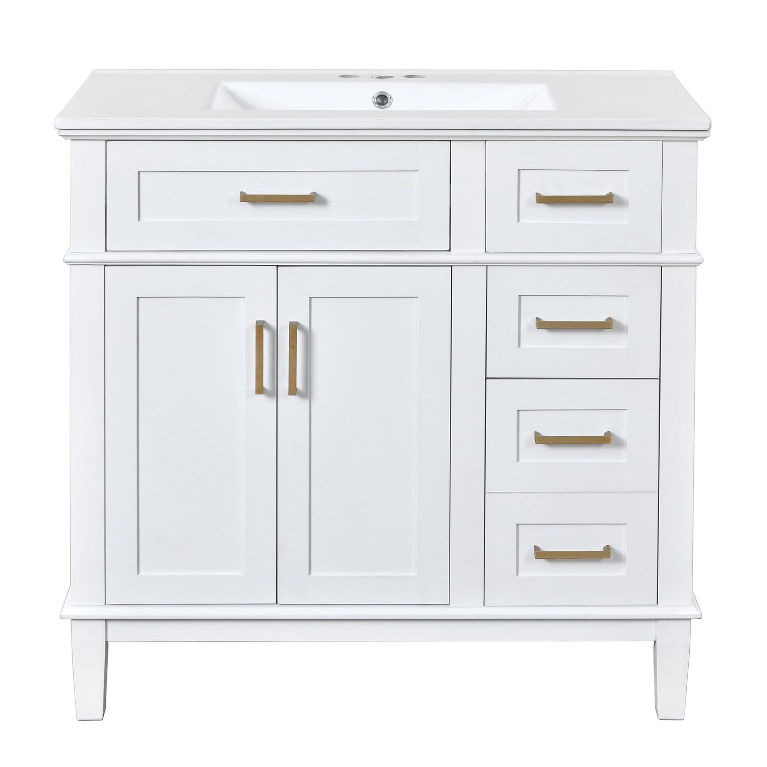 Bathroom Vanity With Sink, Soft Close Doors, And Storage Drawers, 36" - White