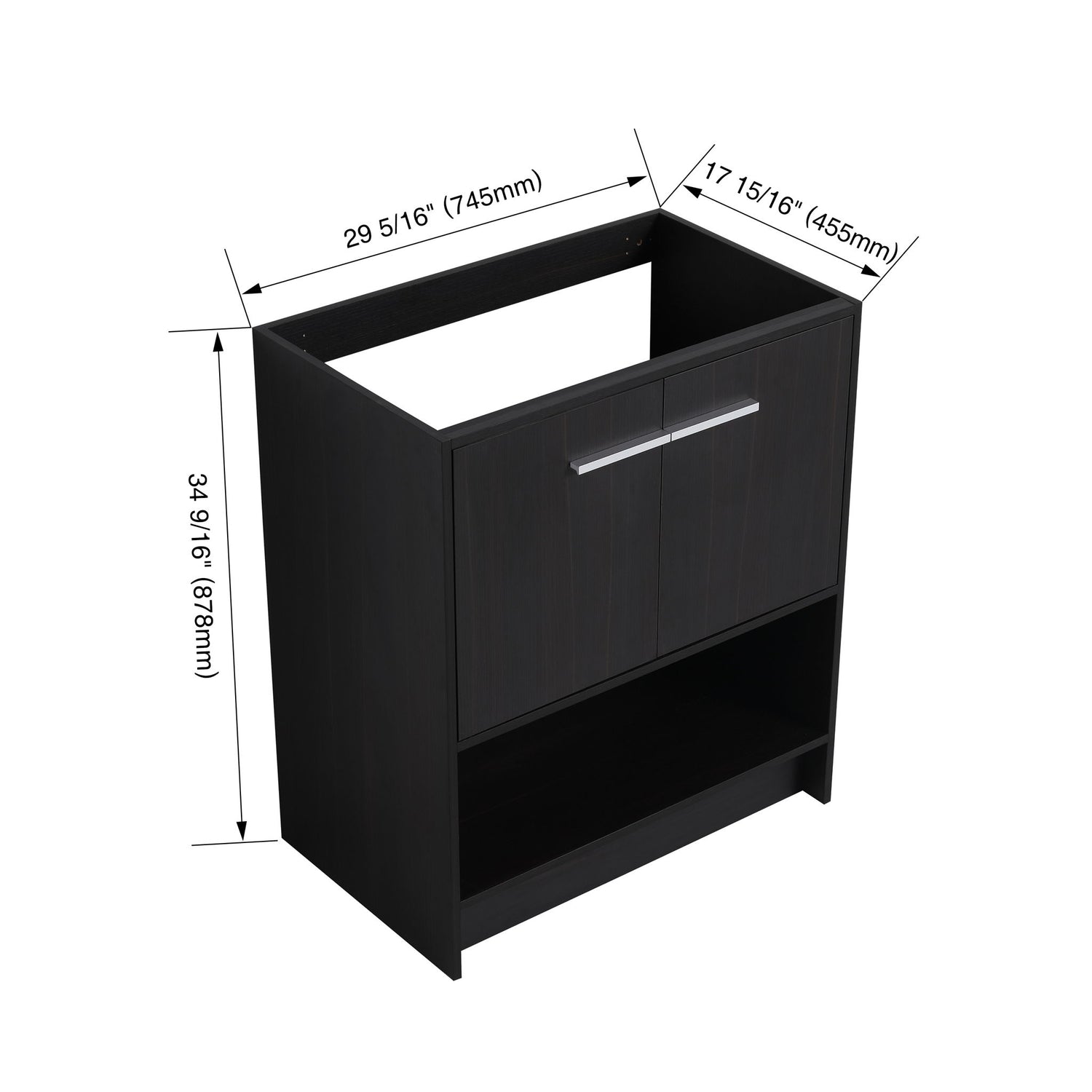 Modern Freestanding Bathroom Vanity With 2 Doors (Excluding Sink) - Black Oak