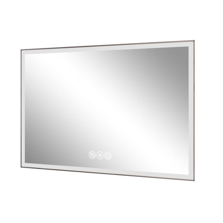 Modern LED Bathroom Vanity Mirror With Aluminum Frame, 45° Beveled Lights, Anti Fog - Silver