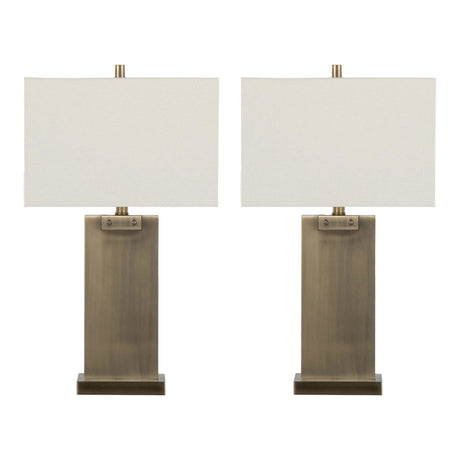 Royce - 26" Metal Table Lamp (Set of 2) - Antique Brass And White Linen