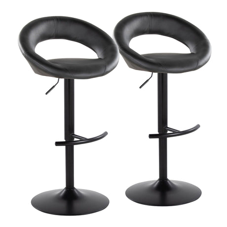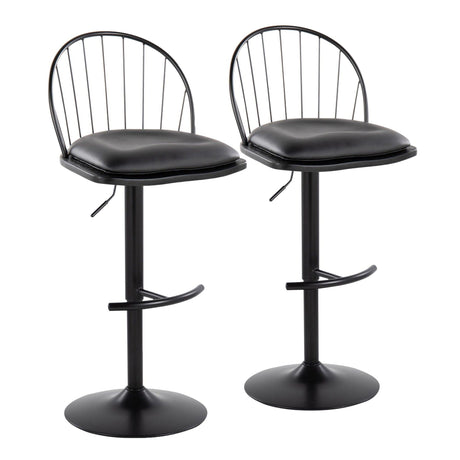 Santi - Upholstered Adjustable Barstool With Swivel And Rounded T Footrest (Set of 2) - Black Metal