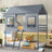 Twin Size Low Loft House Bed With Two Side Windows - Gray / Brown